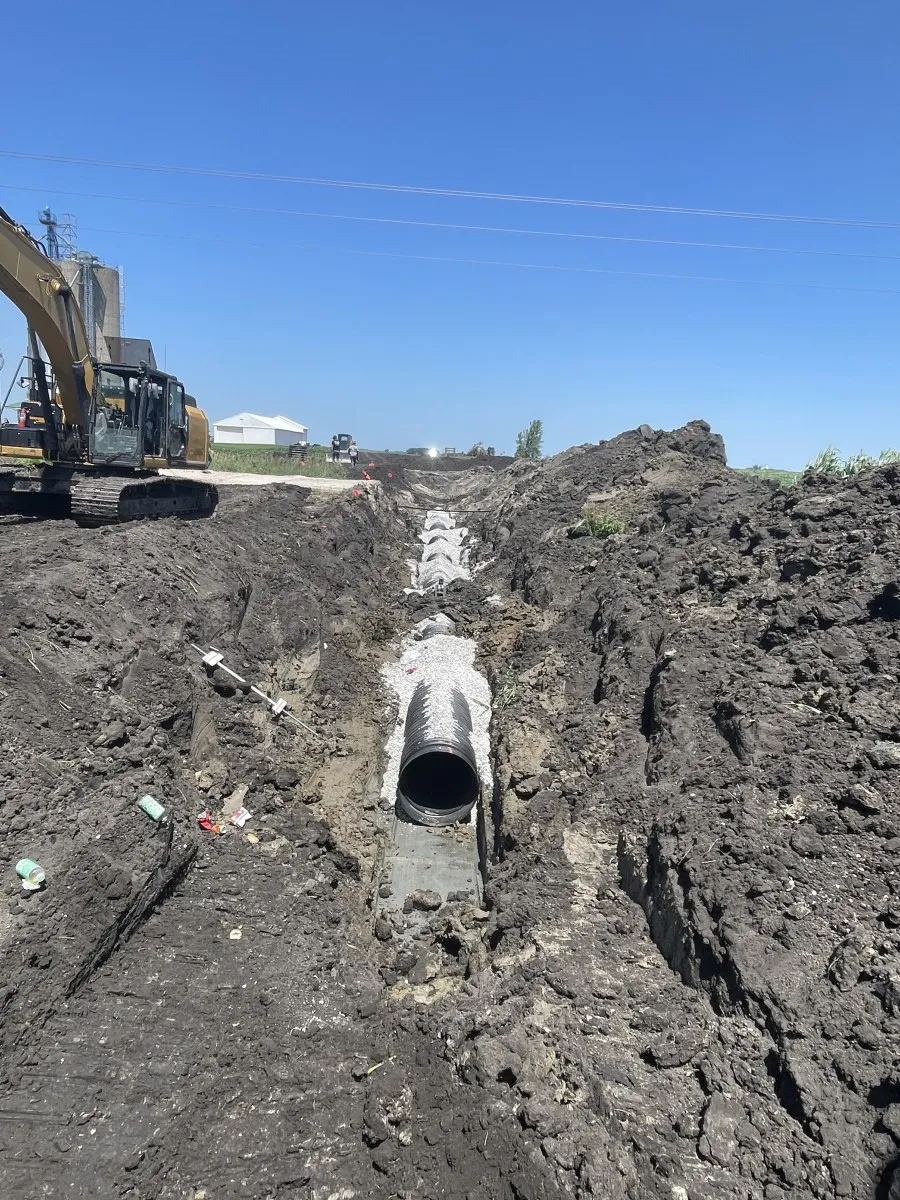 We use the most up-to-date technology. Our pipe laser ensures proper grade of the tile. The spoon on our Excavator bucket gives the pipe adequate support. We also use 1-inch clean rock to ensure the integrity of the tile. We install large diameter pipe. Whether it be plastic or reinforced concrete tile.