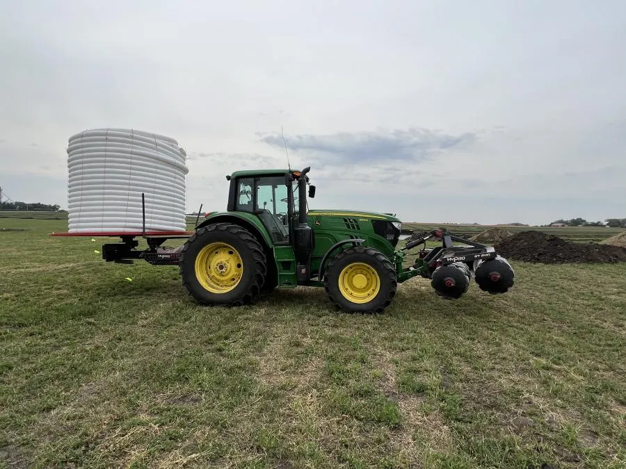 Once the tile is installed our last duty is to backfill all the ditches. We use a HyPro disk with our 6145M John Deere Tractor. This is a vital final step. All the soil must go back to the same location.This ensures that there will be no low spots in any of the trenches.